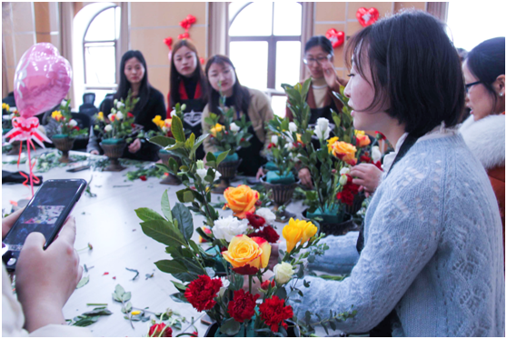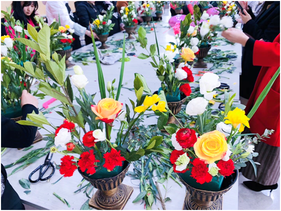 在花藝?yán)蠋煹闹笇?dǎo)下,大家認(rèn)真聆聽, 跟著老師的節(jié)奏,女神們逐漸找到感覺,經(jīng)過一定技術(shù)和藝術(shù)加工,完成了各自的創(chuàng)意作品。花影香間,修身益心,了解了插花藝術(shù)的基本知識(shí),體驗(yàn)到了插花藝術(shù)的操作。花是美的象征,自古以來,怡情于花草之間,是人們熱愛生活、熱愛自然的一種體現(xiàn)。